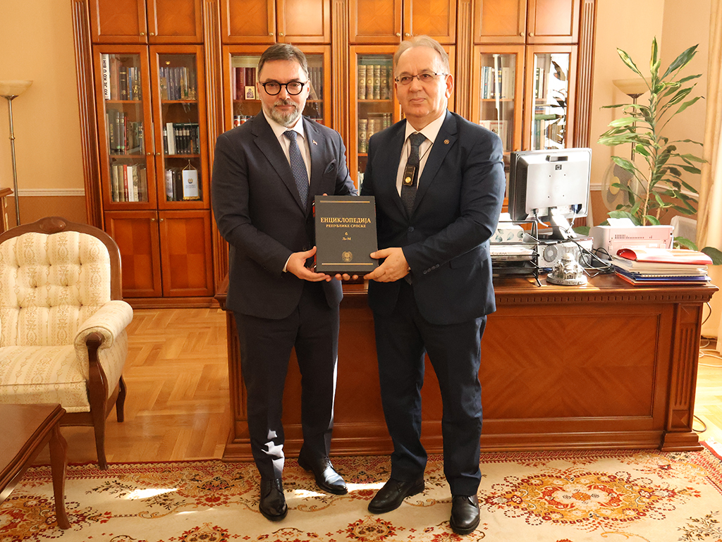 Министар спољне трговине и економских односа и замјеник предсједавајућег Савјета министара БиХ, господин Сташа Кошарац, посјетио је данас, 27. фебруара 2026. године Академију наука и умјетности Републике Српске.
